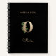 Elegant black notebook features a gold botanical monogram in the centre.