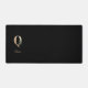 Elegant black desk mat features a gold botanical monogram in the centre.