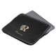 Elegant black laptop sleeve features a gold botanical monogram in the centre.