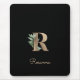 Elegant black mouse pad features a gold botanical monogram in the centre.