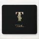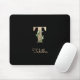 Elegant black gel mouse pad features a gold botanical monogram in the centre.