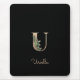 Elegant black mouse pad features a gold botanical monogram in the centre.