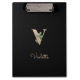 Elegant black clipboard features a gold botanical monogram in the centre.