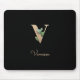 Elegant black mouse pad features a gold botanical monogram in the centre.
