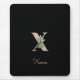 Elegant black mouse pad features a gold botanical monogram in the centre.