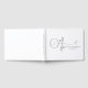 An elegant wedding guest book featuring a soft gray monogram design, with ghosted initials and the couple's names and accented by a refined botanical element. The names and accent are printed in rich gray, offering graceful contrast against a white background. Inside, the pages are lined for guests to leave messages, names, and well wishes. Minimalist and timeless, this design blends quiet texture with subtle detail, creating a meaningful keepsake for your wedding day.