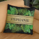 Add beauty, personality, and luxury to your everyday lounging with this botanical green throw pillow, featuring lush tropical leaves and a faux gold name band. Perfect for personalised home décor, housewarming gifts, or adding a chic accent to any room. Designed to complement modern, tropical, or nature-inspired aesthetics. Customise with your name or a loved one’s for a unique touch.