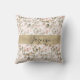 On this stylish pillow is a classic white backdrop with an olive green shaded foliage watercolor pattern creating an elegant modern theme where in the middle is an elegant, shiny gold band where you can personalise it with a name or logo.