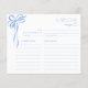 Elegant Bow Blue Watercolor Bridal Shower Recipe