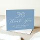 Express your gratitude in style with this sophisticated wedding thank you card showcasing a hand-drawn white bow and “Thank You” in elegant white calligraphy set against a soft blue background. Customise the front with your names and wedding date for a lasting memento of your celebration. The inside of this folded card offers room for your personal note of gratitude, allowing you to share heartfelt thanks with loved ones. With its chic blue and white palette, this design complements classic, coastal, and modern wedding stationery suites.