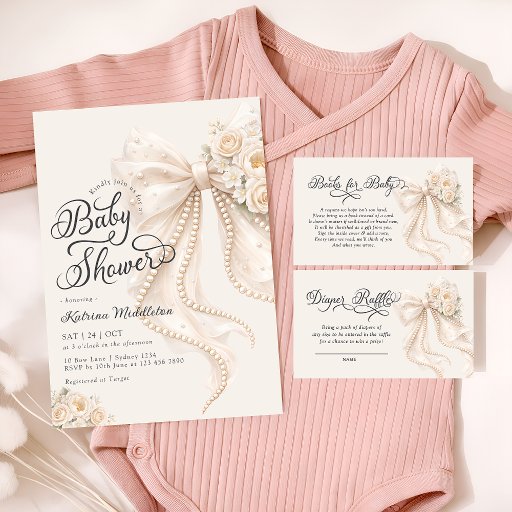 Ivory Bow & Pearls Baby Shower CollectionDesigned by Katsiaryna Lukyanava