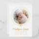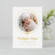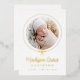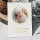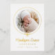 Introducing our Elegant Gold Foil Bow Photo Birth Announcement, a stunning way to celebrate your little one’s arrival. The baby’s photo is beautifully encircled by a gold foil ribbon tied in a bow on a crisp white background. Your baby's first and middle name appear in elegant calligraphy, with the last name and birth stats below. The back of the announcement offers space for an extra photo and a personal message. This luxurious, customisable keepsake is perfect for sharing your joy with family and friends!