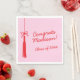 Add a stylish touch to your graduation celebration with these elegant and customisable paper napkins! Featuring a hand-drawn tassel and a chic coquette-style bow, these napkins are both practical and decorative. The handwritten calligraphy-style font adds a personal and sophisticated flair, while the feminine pink and red colour palette creates a festive and charming look.