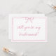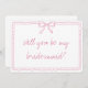 Elegant Bow Handwritten Pink Bridesmaid Proposal Card