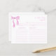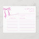 Every kitchen has its own magic—a blend of tradition, creativity, and the secret ingredients passed down through generations. This elegant recipe card is more than a simple place to jot down instructions; it’s a tribute to the warmth of home-cooked meals and the memories they create. Thoughtfully designed with delicate pink bows and graceful typography, it invites friends and family to share their favourite recipes with the bride-to-be, offering her a collection of cherished flavours to bring into her new life.