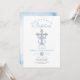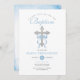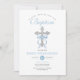 Elegant Boy Baptism Blue Bow Silver Cross Glitter Christening Invitation