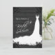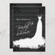Elegant Bridal Gown on Rustic Black Wood Invitation