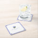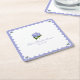 These stylish bridal shower coasters feature a watercolor blue hydrangea at the centre, framed by a scalloped white border and soft lavender-blue edges. Customisable text lets you add the bride’s name and shower date in a classic script. Matching hydrangea illustrations in each corner keep the look cohesive. A fresh, floral detail for cocktail hour, welcome drinks, or mimosa bars—perfect for showers with a garden, brunch, or something-blue theme.
