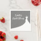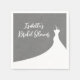 Bright white type and an elegant wedding dress on an illustrated grey linen background accent this bridal shower napkin, making it perfect for a country, western, boho, winter or fall theme. It coordinates perfectly with the Elegant Bridal Shower Collection in grey linen.