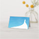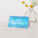 An elegant wedding dress on an aqua blue watercolor background accents this folded place card. It is easy to write your guest's name and table number on these cards when you receive them. These cards are part of the Elegant Wedding Collection in blue watercolor.