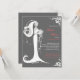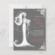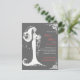 4.25" x 5.5" Elegant bride with flowers on dark grey background with white and red text. Elegant, fully customisable to use as invitation for bridal shower party.