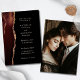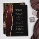 Elegant brown agate photo wedding invitation. Design features a brown watercolor agate border that is beautifully accentuated with faux gold glitter, creating a luxurious and modern aesthetic against a deep black background. Back of the card displays your favourite engagement photo.