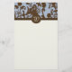 Pretty stationery with a header done in a blue and brown damask, with a round monogram area, and a cream text area. Great looking stationery for any day. Personalise with your own initials for a truly lovely personal stationary.