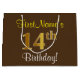 This simple, elegant birthday gift bag design features a personalised message like "FirstName’s 14th Birthday!" (with the "14th" having a faux/imitation gold-like colouring look) on a brown coloured background. The name is in script-like, yellow-coloured text, and can be customised. A personalised birthday gift bag like this could perhaps be used when giving a present or gift to somebody who is celebrating their fourteenth birthday. [~Z0000262]