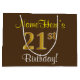 Elegant, Brown, Faux Gold 21st Birthday + Name Large Gift Bag