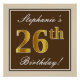 Elegant, Brown, Faux Gold 26th Birthday + Name Poster
