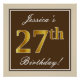 Elegant, Brown, Faux Gold 27th Birthday + Name Poster