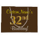 Elegant, Brown, Faux Gold 32nd Birthday + Name Large Gift Bag