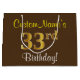 Elegant, Brown, Faux Gold 33rd Birthday + Name Large Gift Bag