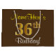 Elegant, Brown, Faux Gold 36th Birthday + Name Large Gift Bag