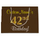 This simple, elegant birthday gift bag design features a personalised message like "CustomName’s 42nd Birthday!" (with the "42nd" having a faux/imitation gold-like colouring look) on a brown coloured background. The name is in script-like, yellow-coloured text, and can be customised. A personalised birthday gift bag like this could perhaps be used when giving a present or gift to somebody who is celebrating their forty second birthday. [~Z0000262]