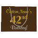 Elegant, Brown, Faux Gold 42nd Birthday + Name Large Gift Bag