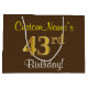 Elegant, Brown, Faux Gold 43rd Birthday + Name Large Gift Bag