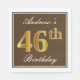 Elegant Brown, Faux Gold 46th Birthday + Name Napkin