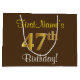 Elegant, Brown, Faux Gold 47th Birthday + Name Large Gift Bag