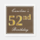 This simple and elegant paper napkin design features a message like "Caroline’s 52nd Birthday" (with the "52nd" having a faux gold-like colouring) within a brown-coloured square area featuring a simple border outline. The name is in a white-coloured script-like text, and can be customised. Napkins like these could perhaps be used at a birthday party for somebody who is celebrating their fifty second birthday. [~Z0000139]
