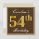 Elegant, Brown, Faux Gold 54th Birthday + Name Invitation