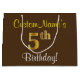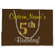 Elegant, Brown, Faux Gold 5th Birthday + Name Large Gift Bag