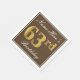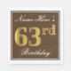 This simple and elegant paper napkin design features a message like "Name-Here’s 63rd Birthday" (with the "63rd" having a faux gold-like colouring) within a brown-coloured square area featuring a simple border outline. The name is in a white-coloured script-like text, and can be personalised. Napkins like these could perhaps be used at a birthday party for somebody who is celebrating their sixty third birthday. [~Z0000139]