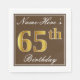 Elegant Brown, Faux Gold 65th Birthday + Name Napkin