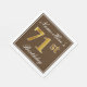 This simple and elegant paper napkin design features a message like "Name-Here’s 71st Birthday" (with the "71st" having a faux gold-like colouring) within a brown-coloured square area featuring a simple border outline. The name is in a white-coloured script-like text, and can be customised. Napkins like these could perhaps be used at a birthday party for somebody who is celebrating their seventy first birthday. [~Z0000139]