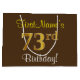 Elegant, Brown, Faux Gold 73rd Birthday + Name Large Gift Bag