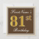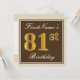 Elegant, Brown, Faux Gold 81st Birthday + Name Invitation