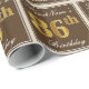 This simple and elegant wrapping paper design features a personalised message like "FirstName’s 86th Birthday" (with the "86th" having a faux/imitation gold-like colouring look) within a brown-coloured square area featuring a simple border outline. The name is in an elegant white-coloured script-like text, and can be personalised. Wrapping paper like this could perhaps be used when wrapping birthday gifts for somebody who is celebrating their eighty sixth birthday. [~Z0000223]