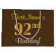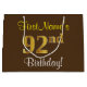 Elegant, Brown, Faux Gold 92nd Birthday + Name Large Gift Bag