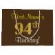Elegant, Brown, Faux Gold 94th Birthday + Name Large Gift Bag